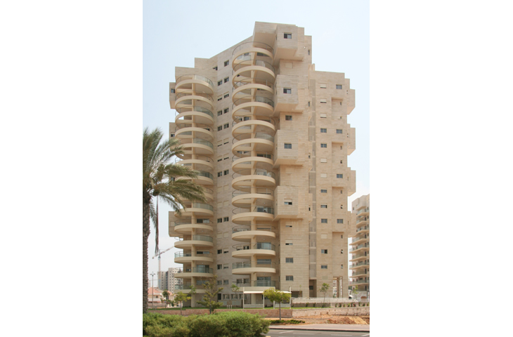 The unique circular shape of the balconies were designed to house wind turbines that would harvest wind to create electricity for the condos.