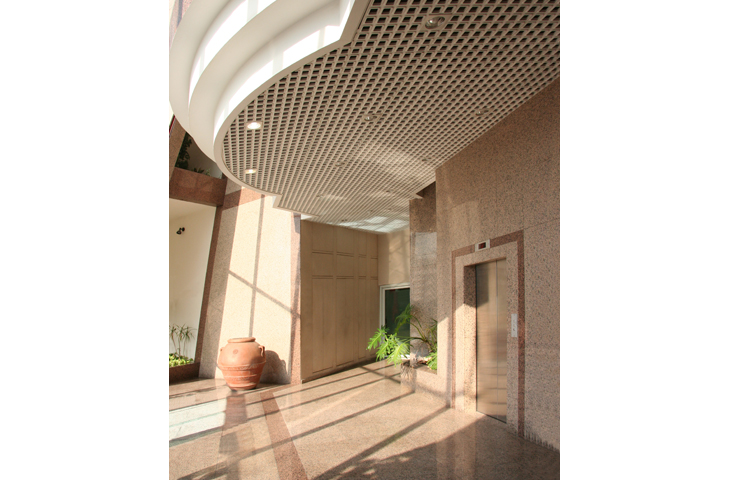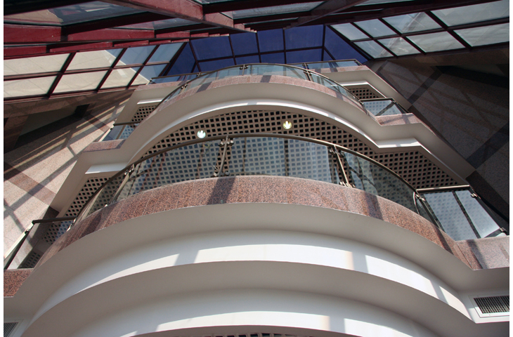 Glass and granite curtain wall shell (prefabricated in Italy)